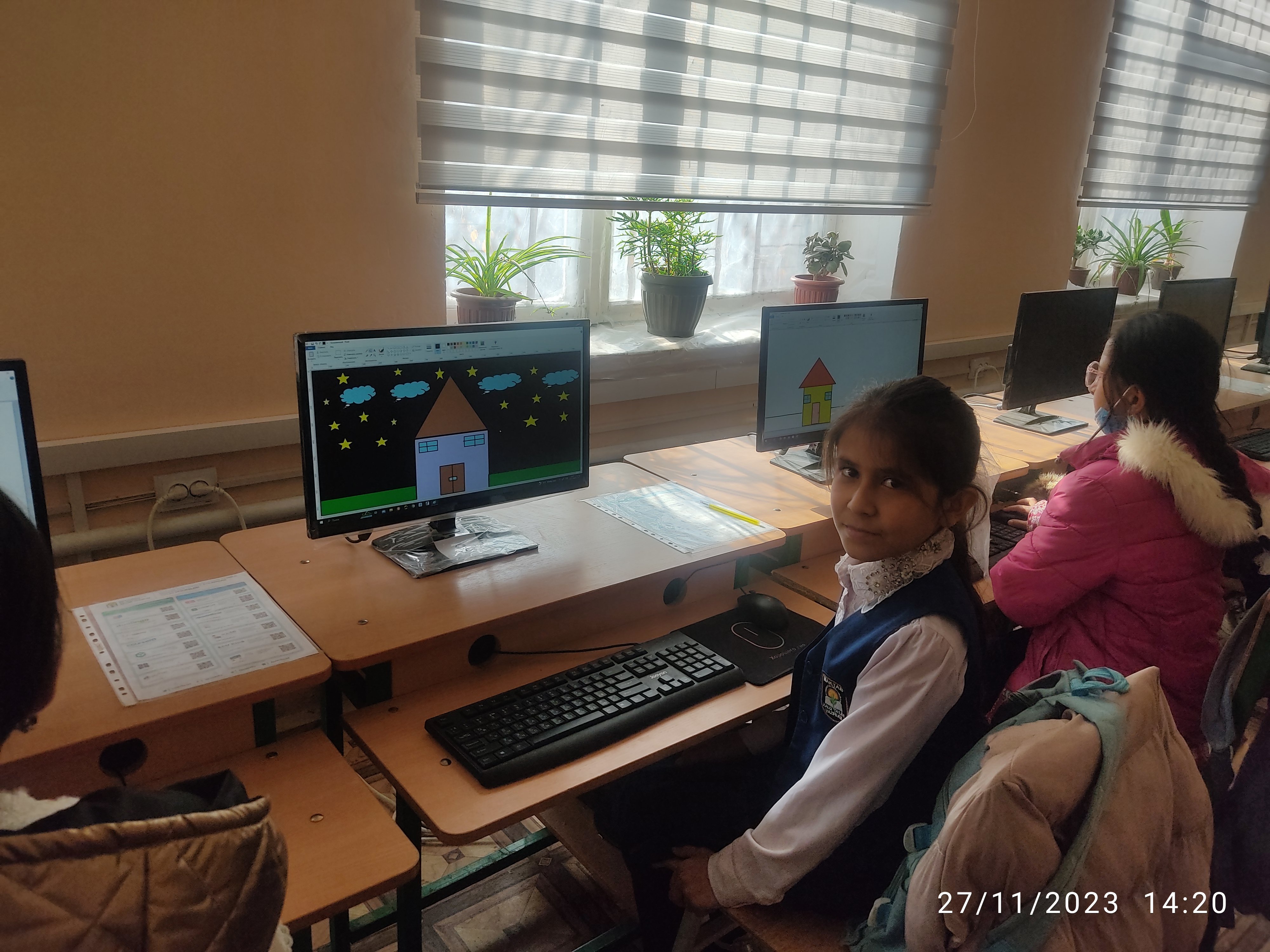 To'garaklar jadvali 21-12-2023, 18:31 Yosh dasturchi to'garakida 5-sinf o'quvchilari "Paint" dasturidan foydalanib tasvir yaratish jarayonidan lavhalar
